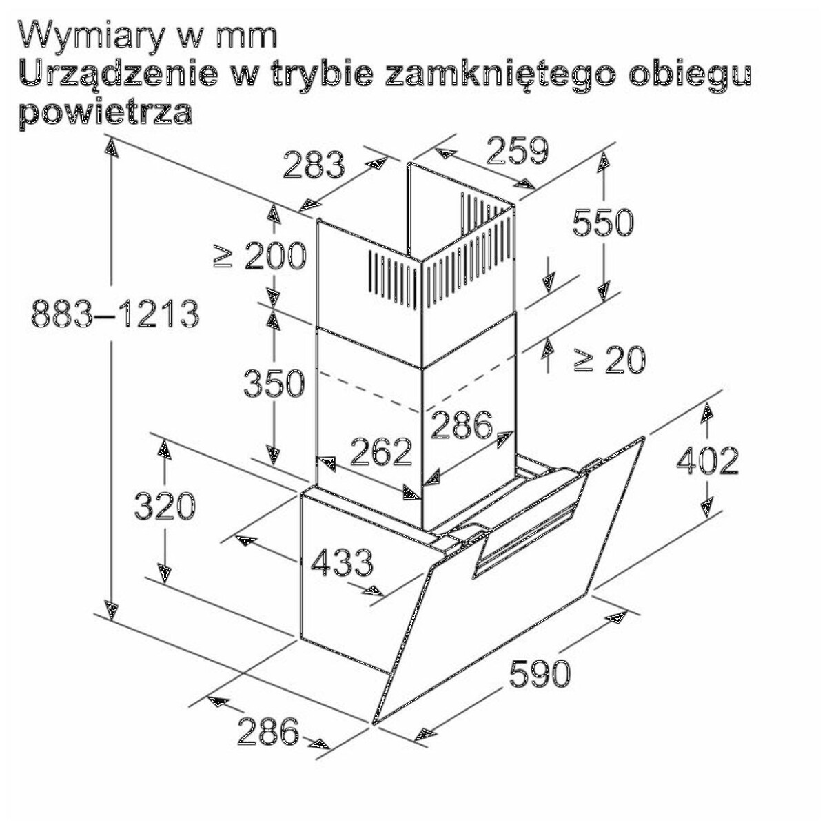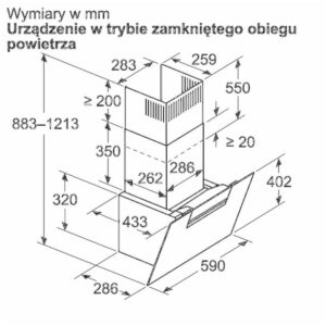 | Wymiary obieg zamknięty (WxSxG) | 883-1213 x 590 x 433 mm |