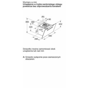 | Zgodnie z EN 61591 oraz EN/ IEC 60704-2-13 urządzenie może osiągnąć poniższe parametry w trybie recyrkulacji przy zastosowaniu zestawu Clean Air plus montowanego razem z kominem (zestaw dostępny jako akcesorium dodatkowe) | Prędkość 1: poziom wentylacji 208 m3/h; głośność 47 dB (A) re1pW Prędkość 2: poziom wentylacji 309 m3/h; głośność 54 dB (A) re1pW) Prędkość 3: poziom wentylacji 429 m3/h; głośność 62 dB (A) re1pW) Tryb intensywny 1: poziom wentylacji 724 m3/h; głośność 74 dB (A) re1pW) |