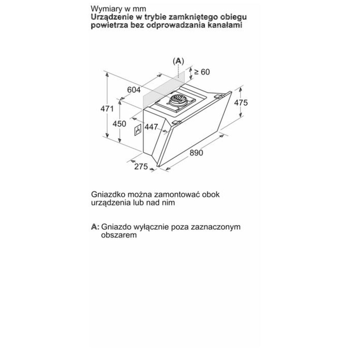 | Wymiary instalacji w trybie recyrkulacji, bez komina (WxSxG) | 471mm x 890 mm x 447 mm |