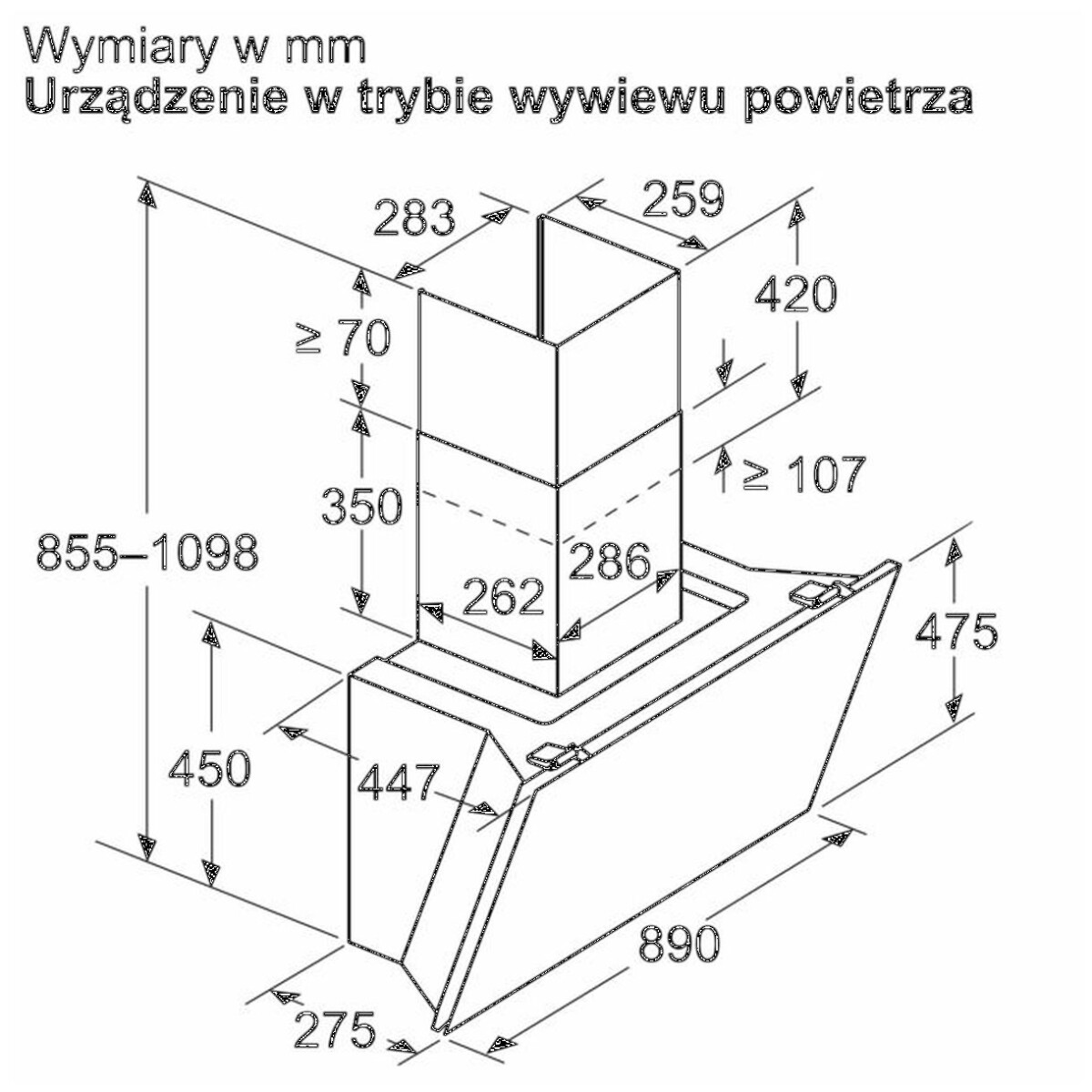 | Wymiary obieg otwarty (WxSxG) | 855-1098 x 890 x 447 mm |