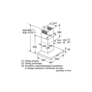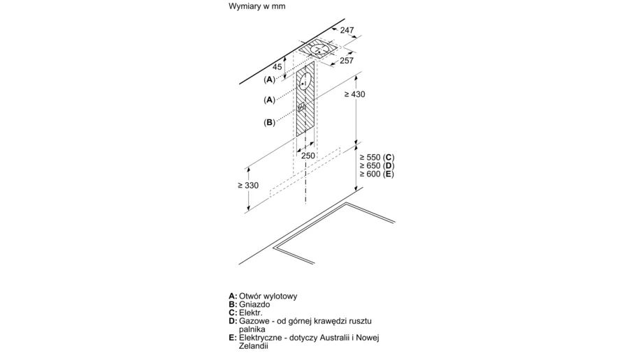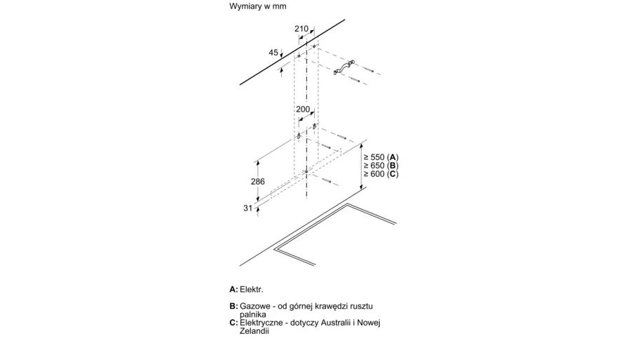 • Minimalna odległość od płyty elektrycznej: 550 mm