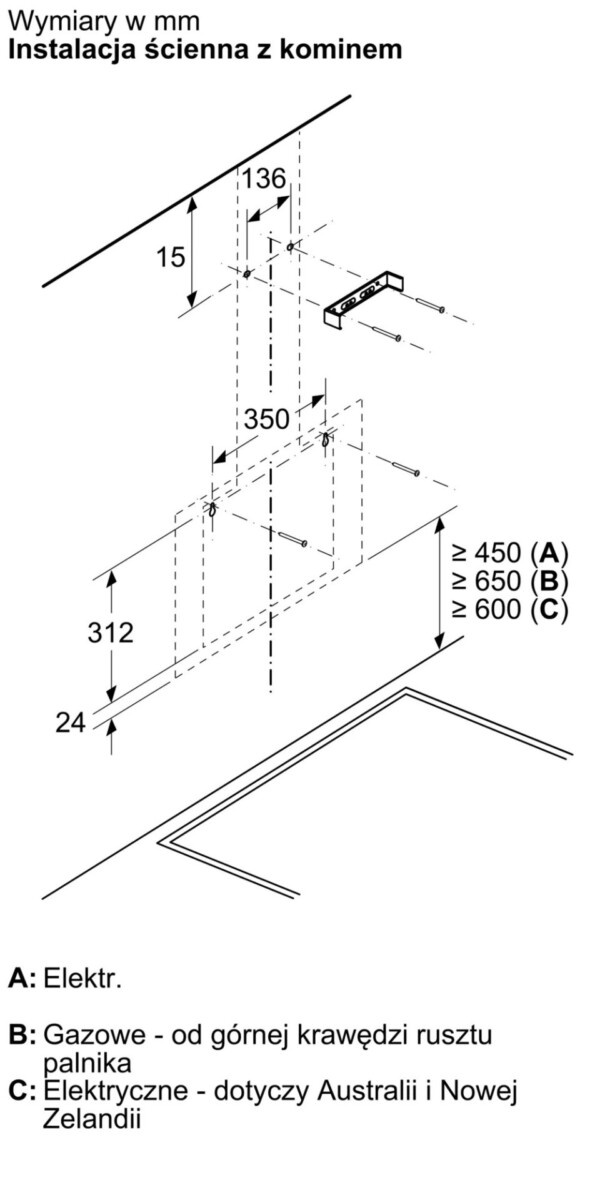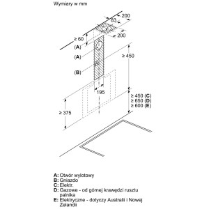 - Minimalna odległość od płyty elektrycznej: 450 mm