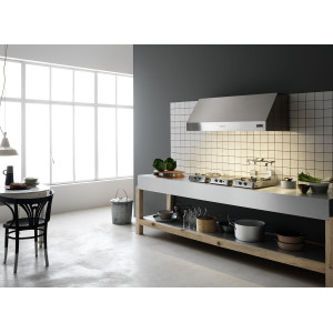 Dane ogólne: Sterowanie elektroniczne, Oświetlenie LED, Możliwość podłączenia wyciągu przez tylną obudowę okapu, Zbiornik na tłuszcz, Filtry labiryntowe Stal inox szczotkowana