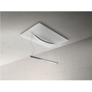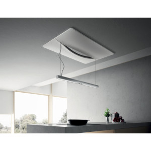Empty Sky jest pierwszym okapem sufitowym marki Elica zbudowanym z kompozytu Cristalplant – uwagę przyciąga narysowana jednym prostym ruchem krzywa tworząca wycięcie, przez które pochłaniane jest powietrze.