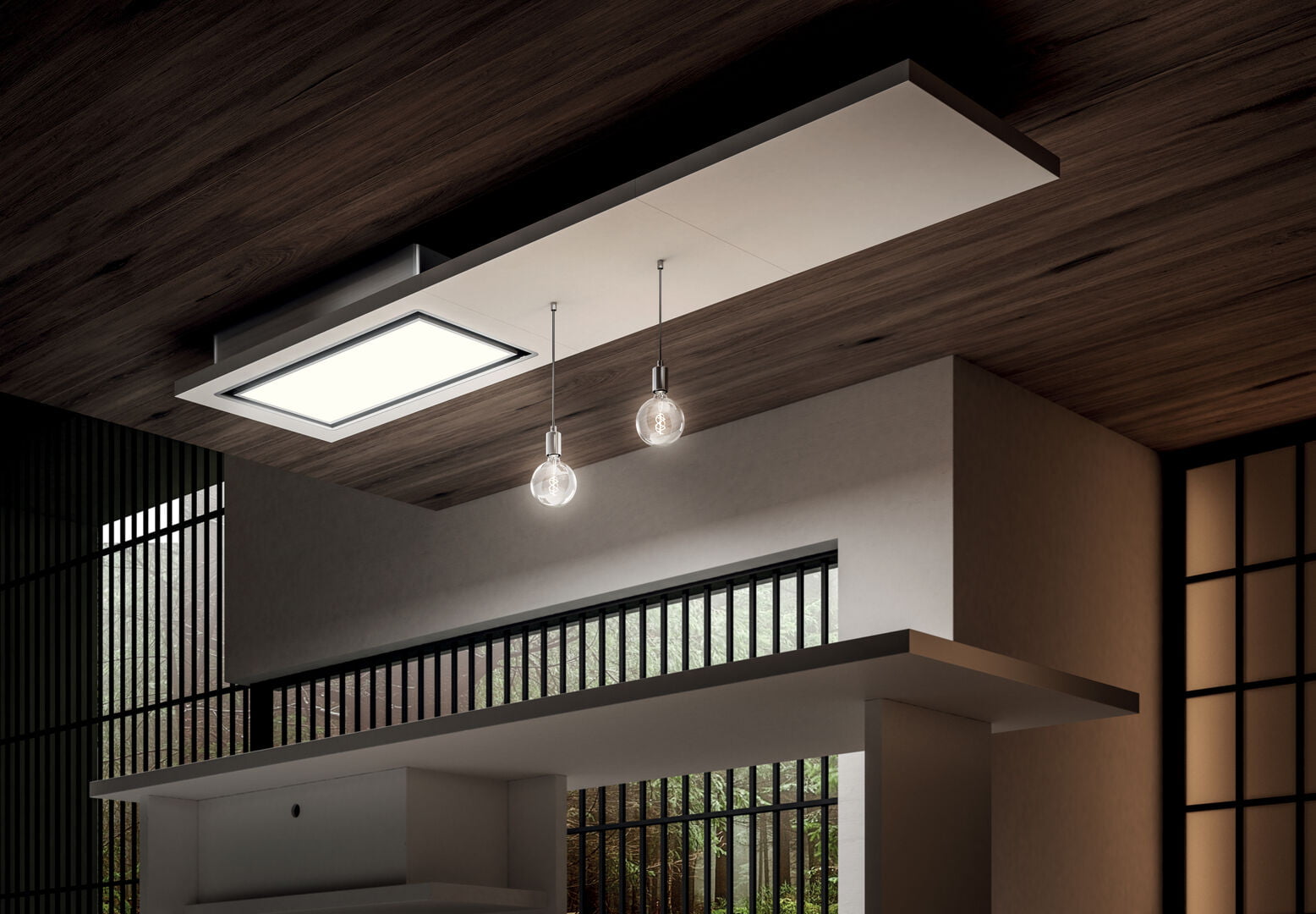 Innowacyjny Lullaby@ jest cichym uczestnikiem życia kuchennego. Naturalnie komponuje się z przestrzenią architektoniczną, a dzięki dodatkowym półkom i akcesoriom oświetleniowym można swobodnie personalizować jego styl i wymiary. Aplikacja Elica Connect umożliwia zdalne zarządzanie urządzaniem.