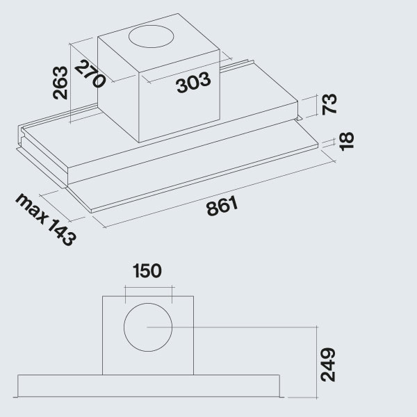 Dane ogólne: Front wysuwany, Sterowanie elektroniczne, Filtr przeciwtłuszczowy metalowy, wymienny z możliwością mycia, Filtr Carbon.Zeo dwuskładnikowy podlegający regeneracji, opcjonalny, Komin opcjonalny, Półka szklana opcjonalna, Dynamic LED Light (2700K – 5600K), Silnik Green.Tech