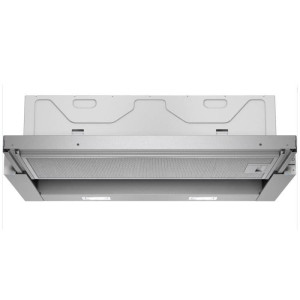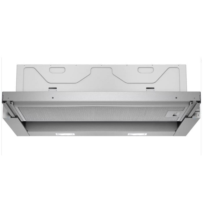 Okap teleskopowy do zabudowy w szafce nad płytą do gotowania.