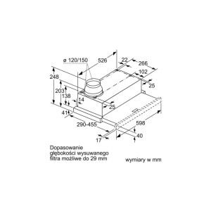 Okap teleskopowy do zabudowy w szafce nad płytą do gotowania.