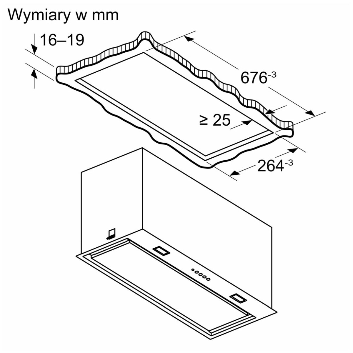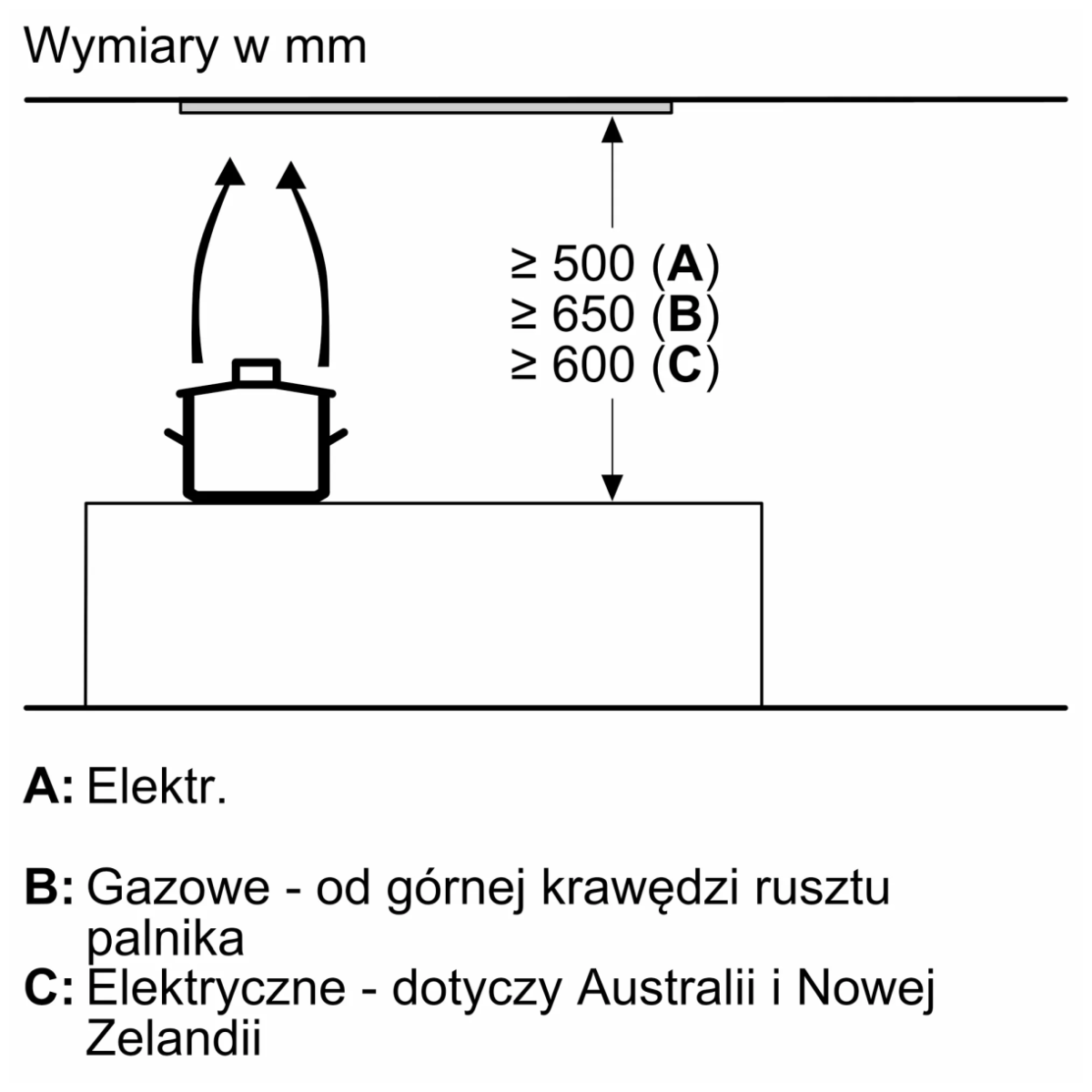 | Minimalna odległość od płyty | Elektryczna: 500 mm; gazowa: 650 mm |