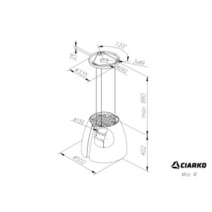 Okap wyspowy Miss W czarny mat ⌀ 40 CIARKO CDW5001CM