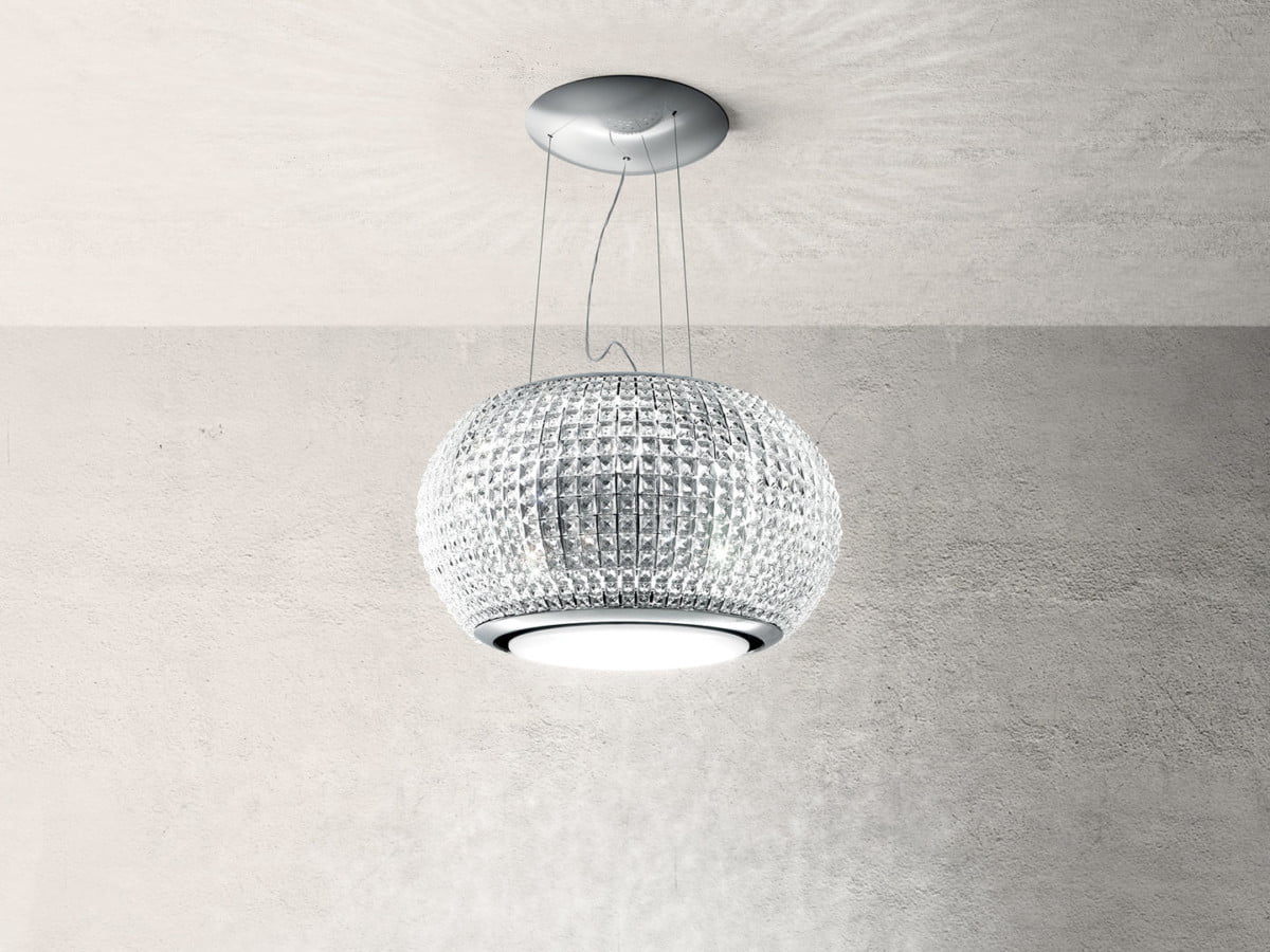 Niekwestionowana gwiazda w pomieszczeniu – ten okap wiszący stwarza magiczną atmosferę dzięki obecności 1152 szklanych elementów, które tworzą magiczną grę światła i barw. Dzięki połączeniu gry światła i cech szkła produkt jest wyrafinowany ale jednocześnie zbalansowany. W ciągu dnia odbija naturalne światło natomiast w godzinach wieczornych oświetla otoczenie tworząc ciekawe efekty optyczne. Interstellar jest nadzwyczaj błyskotliwym okapem.