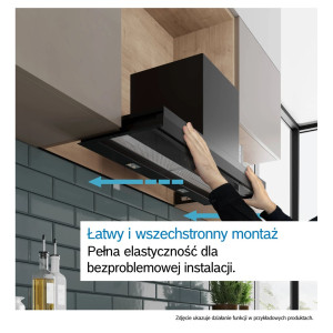 Zintegrowany Okap Bosch Serie 4 DBB85CC60 został zaprojektowany z myślą o pełnej dyskrecji, dzięki czemu po montażu pozostaje niemal niewidoczny, zlicowany z linią szafek kuchennych. Konstrukcja o szerokości 798 mm oraz głębokości 298 mm pozwala na zabudowę w standardowych ciągach meblowych, co sprzyja zachowaniu estetycznej spójności wnętrza. Wykończenie z czarnego szkła nie tylko ułatwia utrzymanie urządzenia w czystości, ale również podkreśla nowoczesny charakter strefy gotowania.