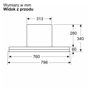 Konstrukcja przeznaczona do zabudowy o szerokości 798 mm oraz głębokości 298 mm umożliwia całkowitą integrację urządzenia wewnątrz szafki, pozostawiając widoczny jedynie szklany panel. Okap Bosch Serie 4 DBB85CC60 posiada 2 lampy LED, które emitują światło o neutralnej temperaturze 3.500 K i natężeniu 290 lux, doświetlając bezpośrednio płytę grzewczą. Metalowy filtr zmywalny stal nierdzewna skutecznie zatrzymuje cząsteczki tłuszczu, chroniąc wnętrze urządzenia i kanały wentylacyjne przed osadami.