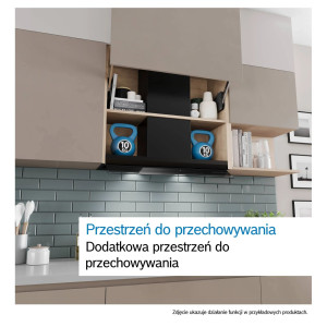 Codzienną pracę ułatwiają 2 lampy LED, które oświetlają płytę grzewczą światłem o neutralnej barwie, dając pełną kontrolę nad przygotowywanymi potrawami. Mimo dużej siły ssania, moc akustyczna przy prędkości maks. 65 dB utrzymuje hałas na poziomie, który nie zakłóca swobodnej rozmowy domowników. Całość funkcjonuje w oparciu o silnik o łącznej mocy 185 W, co przy zachowaniu parametrów takich jak klasa efektywności energetycznej B, czyni ten model wydajnym elementem wyposażenia, który nie obciąża nadmiernie budżetu domowego przy rocznym zużyciu energii 70.5 kWh/rok.