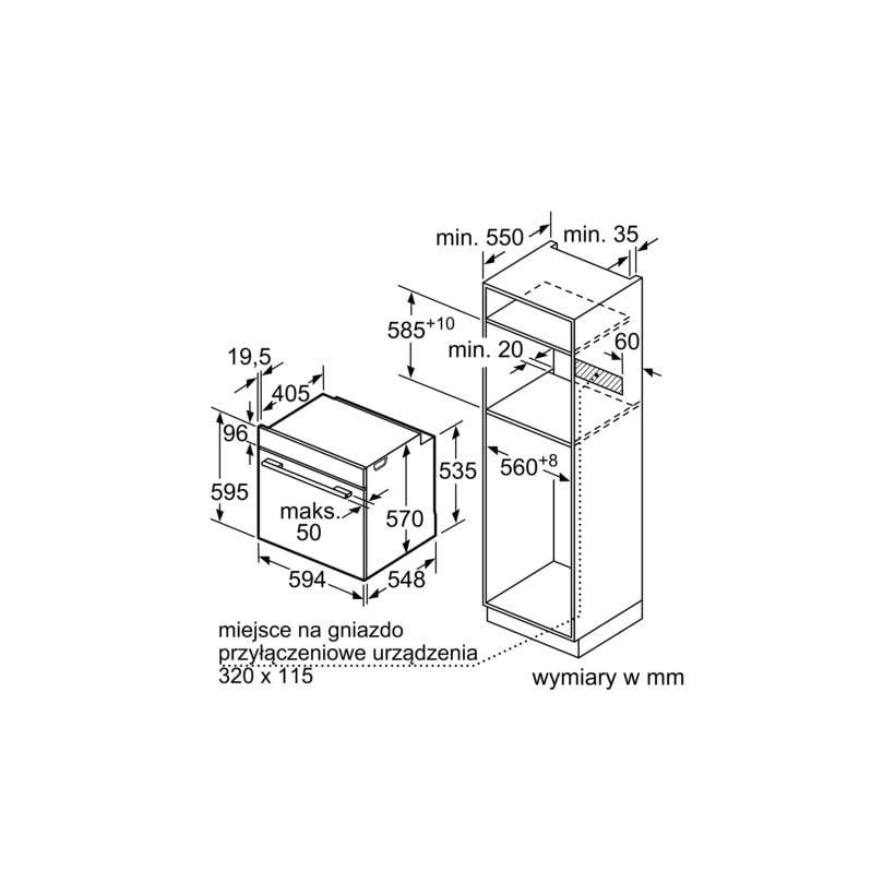 - Wymiary niszy (WxSxG): 560 mm – 568 mm x 585 mm – 595 mm x 550 mm