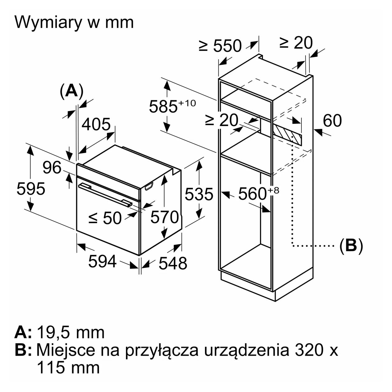 Piekarnik Serie 6 HBG536EW4 to zaawansowane urządzenie do zabudowy, zaprojektowane z myślą o pełnej integracji z nowoczesną zabudową kuchenną. Dzięki uniwersalnym wymiarom urządzenia 595x594x548 mm, model ten pozwala na precyzyjny montaż zarówno w słupku, jak i pod blatem roboczym. Dominujący kolor biały frontu oraz panelu sterowania nadaje urządzeniu minimalistyczny, spójny wygląd, który optycznie rozjaśnia przestrzeń kuchenną.