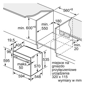 Minimalna szerokość instalacyjna (mm) 560 mm