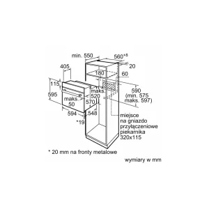 - Wymagana przestrzeń instalacyjna (WxSxG): 575-597 x 560-568 x 550 mm