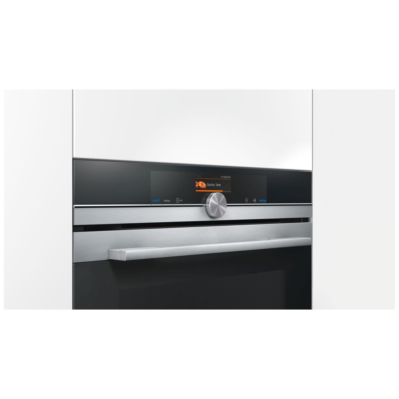 Piekarnik do zabudowy iQ700 oferuje 13 funkcji grzania oraz regulację temperatury w zakresie 30 °C – 300 °C. Dotykowy wyświetlacz tekstowy TFT 3,7″ to intuicyjna nawigacja przyjazna dla użytkownika. Sukces w pieczeniu gwarantowany dzięki cookControl Plus. Dzięki specjalnej powłoce ecoClean na tylnej ściance czyszczenie odbywa się bez większego wysiłku. Szybkie rozgrzanie piekarnika zapewnia funkcja fastPreheat. Piekarnik został wyposażony również w zabezpieczenie przed uruchomieniem przez dzieci, wyłącznik bezpieczeństwa i wskaźnik zalegania ciepła.