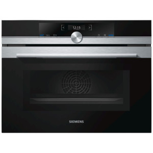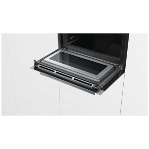 Kompaktowy piekarnik do zabudowy serii iQ700 z mikrofalą oferuje 6 funkcji grzania, przyspiesza czas przygotowywania potrawy dzięki varioSpeed i szybkiemu nagrzewaniu fastPreheat. Miękkie i ciche otwieranie i zamykanie drzwi piekarnika zapewniają systemy softMove i softClose. Przy użyciu termoobiegu 4D innowacyjny wentylator szybko i wydajnie rozprowadza ciepło w całym piekarniku. Wyświetlacz tekstowy TFT 2,8″ pozwala na intuicyjne zarządzanie praca urządzenia. Piekarnik posiada również 14 programów automatycznych cookControl ułatwiające przygotowanie równych dań.