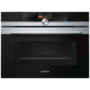Piekarnik kompaktowy do zabudowy serii iQ700 posiada funkcję mikrofali, co stanowi doskonałe uzupełnienie tego niezawodnego urządzenia. Intuicyjna nawigacja przyjazna dla użytkownika dzięki kolorowemu wyświetlaczowi tekstowemu TFT 3,7″. Funkcja varioSpeed skraca czas pieczenia bez obniżenia jakości i smaku potraw. Specjalna powłoka ecoClean Plus ułatwia czyszczenie urządzenia. Termoobieg 4D gwarantuje równomierną dystrybucję ciepła przy użyciu nawet czterech poziomów jednocześnie. Piekarnik posiada również aystem wspomagający wybór potrawy cookControl Plus.