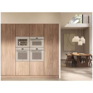 Funkcja Miele@home integruje urządzenie z siecią domową umożliwiając zdalne sterowanie. Ruchomy panel sterowania z mechanizmem SoftClose otwiera się dotykiem odsłaniając zbiornik świeżej wody o pojemności 1.4 l. Funkcja Automatyczne gotowanie zestawu obiadowego samodzielnie dobiera parametry takie jak temperatura i czas dla wielu potraw.