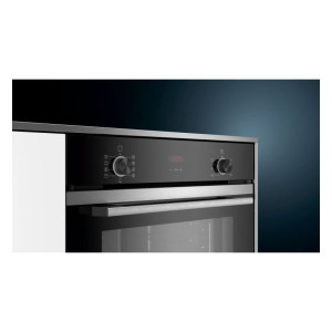 Piekarnik do zabudowy serii iQ300 to niezawodny partner w Twojej kuchni. Zakres temperatur pracy piekarnika to 50 °C – 275 °C. Sterowanie odbywa się za pomocą chowanych pokręteł. Urządzenie wyposażono w wyświetlacz LED z czerwonym podświetleniem. Łatwość czyszczenia zapewnia specjalna powłoka ecoClean, a równomierne rozprowadzenia ciepła gwarantuje termoobieg 3D Plus. Dzięki specjalnemu, łatwemu w obsłudze systemowi mocowania prowadnic varioClip z funkcją telescopeStop, można je samodzielnie demontować i umieszczać na dowolnym poziomie.