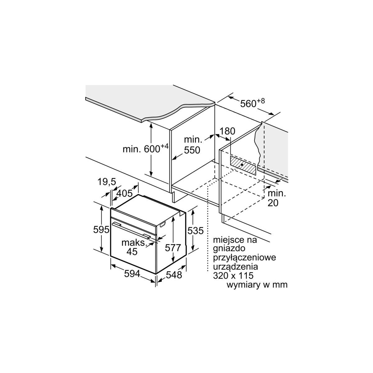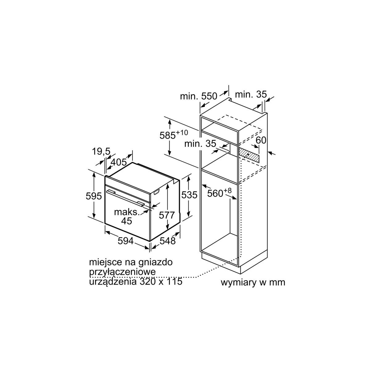 | Maksymalna wysokość niszy | 595 mm |