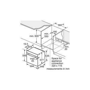 Piekarnik Bosch Series 8 HSG7584B1 to urządzenie, które doskonale wpisuje się w wymiary niszy kuchennej o rozmiarach 585-595 x 560-568 x 550 mm, gwarantując harmonijny wygląd całej przestrzeni. Jego kompaktowe wymiary 595 x 594 x 548 mm pozwalają na swobodne umieszczenie go w dowolnym miejscu.