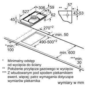 | Wymagane wymiary montażowe (WxSxG) | 45 × 270 × 490–500 mm |