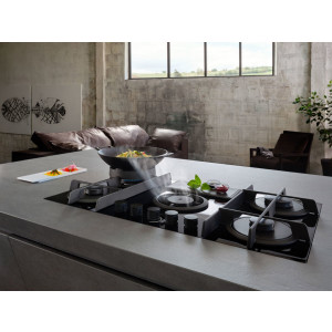 Umieszczenie nad wlotem podstawki pod wok zwiększa prędkość wyciągania oparow w przypadku intensywnego gotowania. Płyta ze szkła ceramicznego ułatwia codzienne czyszczenie.