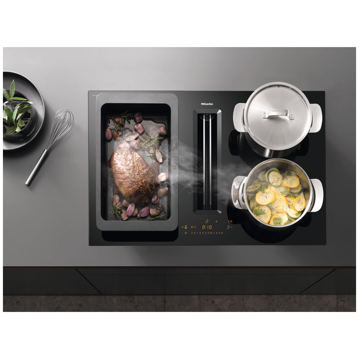 Funkcjonalność pozwala na przygotowanie 4 naczyń jednocześnie. Utrzymanie higieny jest proste dzięki łatwemu do czyszczenia szkłu ceramicznemu łatwemu w czyszczeniu wnętrzu okapu CleanCover oraz metalowym filtrom tłuszczu ze stali szlachetnej nadającym się do mycia w zmywarce.