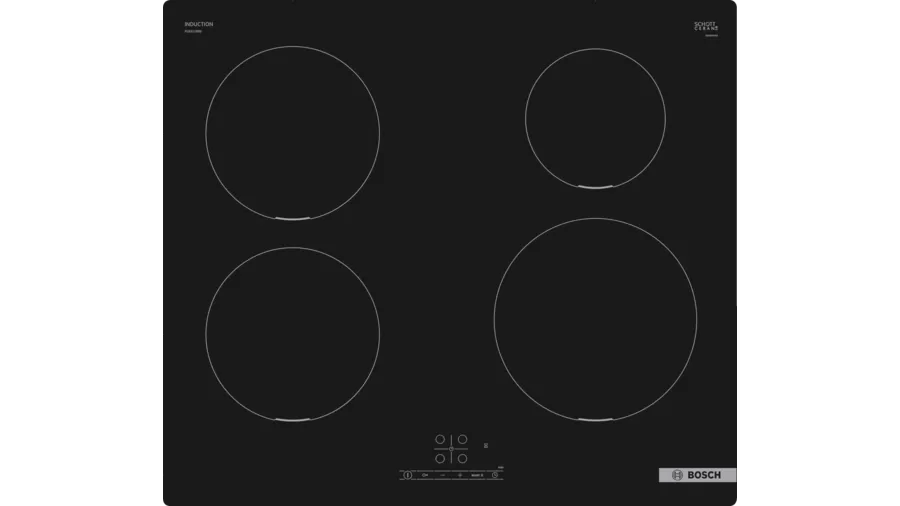 Płyta indukcyjna 60 cm PUE611BB5D z serii 4 marki Bosch to zaawansowane rozwiązanie dla Twojej kuchni. Wyposażona w cztery pola grzewcze z ceramiczną powierzchnią, zapewnia szybkie i precyzyjne gotowanie przy minimalnym zużyciu energii.