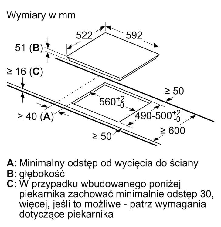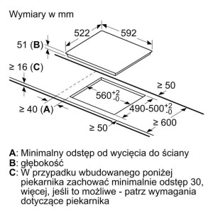 Wymagana przestrzeń instalacyjna (WxSxG) : 51 x 560-560 x 490-500 mm
