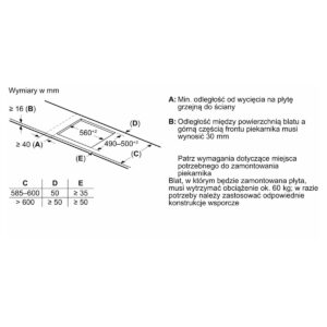 | Wymagane wymiary montażowe wnęki (WxSxG mm) | 51 x 560 x (490 – 500) |