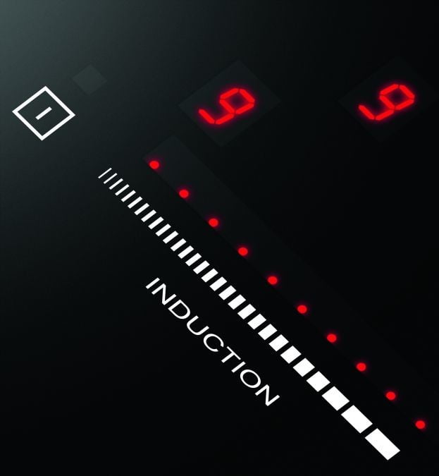 – Sterowanie za pomocą centralnego SLIDERA (elektroniczny, podświetlany suwak pokazujący ustawioną moc pola grzewczego)
