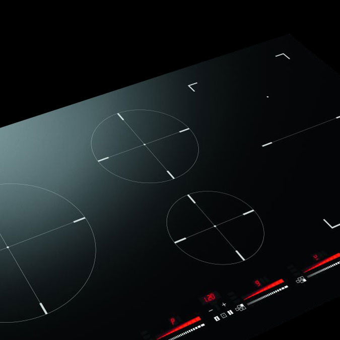 Płyta indukcyjna do montażu na blacie, lub na równi z blatem (pionowe krawędzie boczne). Bez ramki.