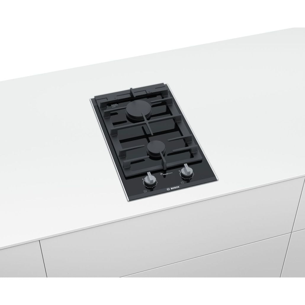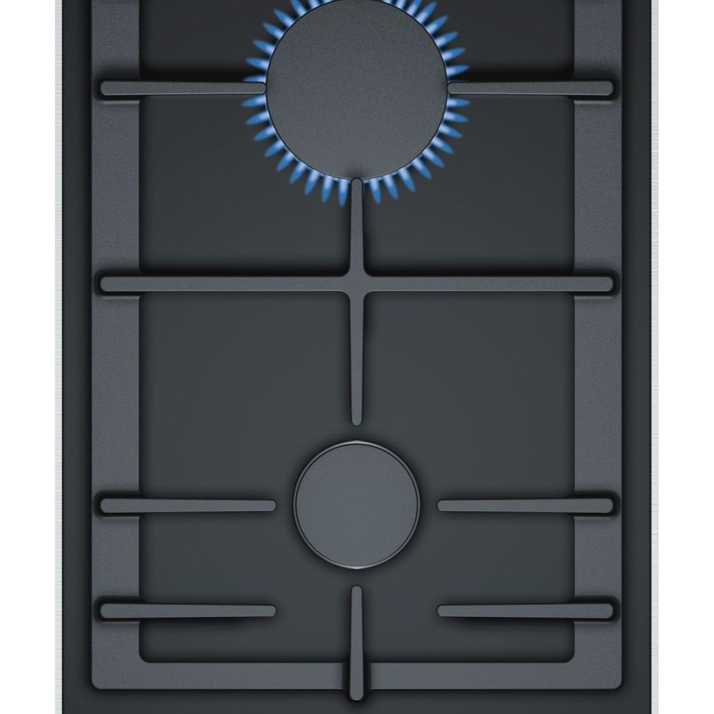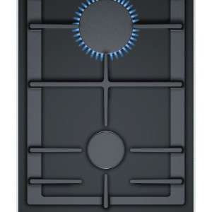 Serie | 8 Płyta gazowa ceramiczna, 2 palniki gazowe – 1 mocny, 1 standardowy, technologia FlameSelect, wyświetlacz cyfrowy, zabezpieczenie przeciwwypływowe gazu, zapalarka, żeliwny ruszt odporny na zmywanie w zmywarce, sterowanie z przodu płyty. Płyta obsługuje gaz: 2E, 3B/P.