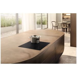 Konstrukcyjnie płyta charakteryzuje się elegancką powierzchnią szklano-ceramiczną w matowej czerni. Technologia MattFinish sprawia że powierzchnia jest odporna na zarysowania i redukuje odciski palców co przekłada się na łatwiejsze utrzymanie czystości i estetyki. Płyta jest przystosowana do zabudowy zlicowanej oraz zabudowy nablatowej co pozwala na elastyczną integrację z projektem kuchni.