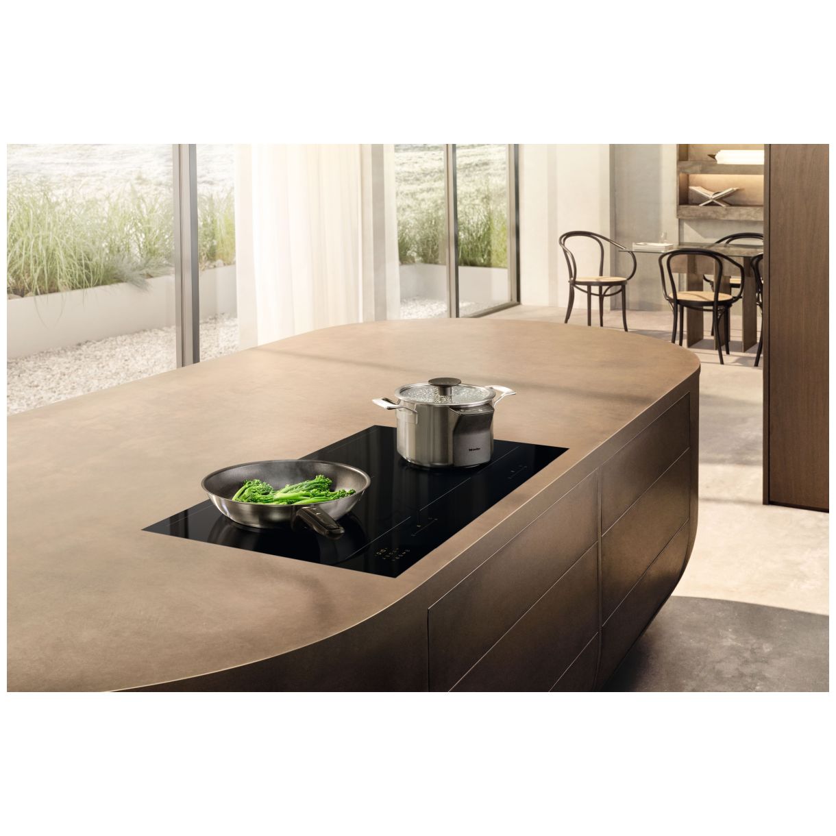 Sercem urządzenia jest indukcyjny rodzaj grzania zapewniający błyskawiczne i precyzyjne przygotowywanie posiłków. Płyta wyposażona jest w 6 stref grzejnych PowerFlex z których każda o maks. mocy Booster 3650 W dynamicznie dostosowuje się do naczynia. Trzy obszerne mostki PowerFlex zlokalizowane po lewej środkowej i prawej stronie dysponują imponującą maks. mocą Booster do 7360 W co idealnie sprawdza się przy większych garnkach. Całkowita moc przyłączeniowa 11.040 kW świadczy o wysokiej wydajności. Intuicyjna obsługa MultiSlide za pomocą przycisków dotykowych z żółtym wyświetlaczem wspierana przez zaawansowaną technologię M Sense oraz połączenie z Miele@home i programy wspomagające podnosi komfort i precyzję gotowania.