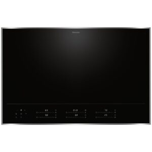 Płyta indukcyjna Miele KM 8685 FR (12911640) to zaawansowane rozwiązanie do nowoczesnej kuchni zaprojektowane jako zabudowa nablatowa niezależna od piekarnika. Jej kompaktowe wymiary – wysokość 52 mm szerokość 806 mm i głębokość 526 mm – oraz wysokość zabudowy wynosząca 45 mm zapewniają estetyczną integrację z blatem. Urządzenie o wadze 19 kg wyróżnia elegancka powierzchnia ze szkła ceramicznego w kolorze czarnym oprawiona w solidną stalową ramę.