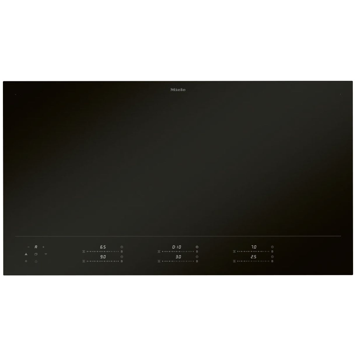 Płyta pełnopowierzchniowa oferuje cały obszar grzejny o wielkości 870x380 mm co pozwala na swobodne ustawienie do maksymalnej ilości naczyń do gotowania: 6 w dowolnym miejscu. Urządzenie dostarcza maks. moc w W: 2600 którą można zwiększyć za pomocą funkcji Booster do maks. mocy Booster w W: 3650 co przyspiesza proces podgrzewania. Sterowanie odbywa się poprzez przyciski dotykowe MultiSlide co zapewnia precyzyjną kontrolę nad ustawieniami mocy wyświetlanymi na białym kolorze wyświetlacza. Dostępne są również tryb Profi oraz programy wspomagające rozszerzające możliwości kulinarne. Integracja z Miele@home za pomocą połączenia sieciowego umożliwia zdalne zarządzanie i monitorowanie.