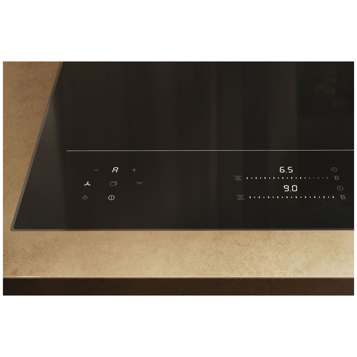 Zaawansowane sterowanie odbywa się poprzez obsługę poprzez przyciski dotykowe MultiSlide z informacją prezentowaną na kolorze wyświetlacza Biały. Płyta wyróżnia się ilością stref grzejnych: 1 i ilością obszarów grzejnych: 1 tworząc cały obszar o wielkości w mm: 870×380. Pozwala to na swobodne rozmieszczanie do maksymalnej ilości naczyń do gotowania: 6. Intensywne gotowanie umożliwia maks. moc 2600 W oraz funkcja maks. moc Booster 3650 W zapewniając szybkość i precyzję. Całkowita moc przyłączeniowa 11 kW gwarantuje wysoką wydajność.