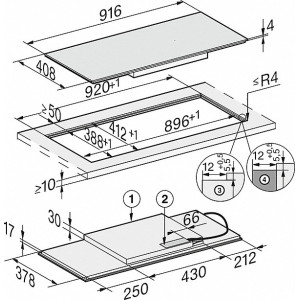 | Wewnętrzne wymiary wycięcia w mm (głębokość) przy wpasowaniu w blat |