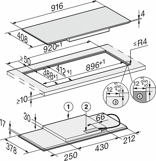 - O szerokości 916mm do montażu na blacie lub wpasowania w blat