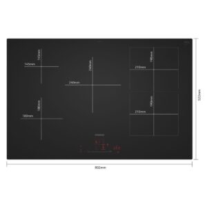 | Strefy grzewcze (rozmiar / moc) | Lewa przednia: 180 mm – 2.0 kW (max 3.1 kW) Lewa tylna: 145 mm – 1.6 kW (max 2.2 kW) Środkowa tylna: 240 mm – 2.5 kW (max 3.7 kW) Prawa tylna: 190/210 mm – 2.5 kW (max 3.7 kW) Prawa przednia: 190/210 mm – 2.5 kW (max 3.7 kW) combiZone: łączenie dwóch sąsiednich pól w jeden obszar |