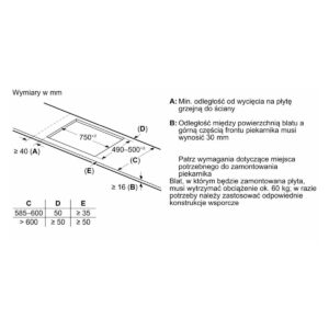 | Wymagana przestrzeń instalacyjna (WxSxG) | 51 × 750 × 490–500 mm |