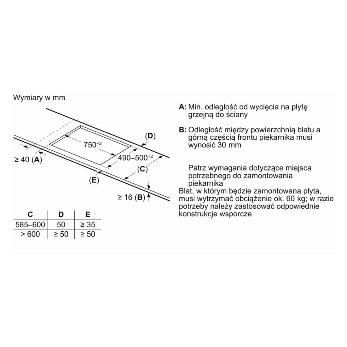 | Rodzaj | Płyta indukcyjna do pełnej zabudowy, bezramkowa (montaż nablatowy) |