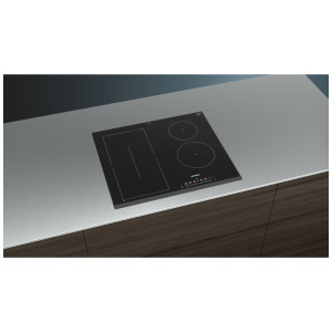 Płyta indukcyjna serii iQ500 o szerokości 60 cm zapewnia gotowanie wydajniejsze energetycznie dzięki wskaźnikowi zużycia energii. Płyta wykonana została z czarnego szkła ceramicznego z ozdobnym szlifem z przodu i po bokach. Urządzenie posiada sterowanie sensorowe touchSlider, które pozwala na łatwe kontrolowanie 4 pól indukcyjnych o mocy od 1,8 kW do 2,2 kW. Płyta indukcyjna automatycznie włącza się i wyłącza dzięki elektronicznemu rozpoznawaniu obecności naczyń. Funkcja powerBoost zwiększa moc wszystkich stref grzewczych.