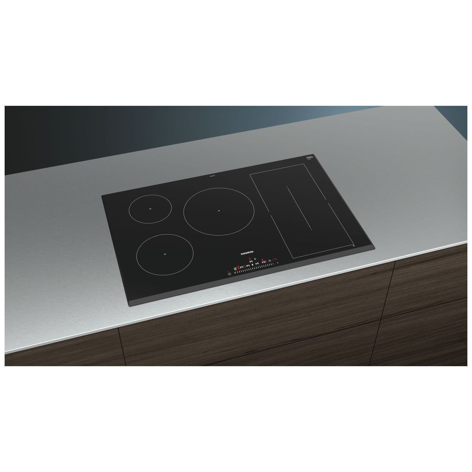 Płyta indukcyjna serii iQ500 o szerokości  80 cm z innowacyjnymi funkcjami, umożliwia elastyczne gotowanie w każdej sytuacji. Technologia touchSlider pozwala regulować temperaturę stref gotowania przez dotknięcie podziałki. Wskaźnik ciepła resztkowego informuje o poziomie temperatury powierzchni płyty, chroniąc przed poparzeniami. Większą wygodę gotowania zapewnia funkcja timera. CombiZone umożliwia gotowanie w dużych garnkach lub brytfankach. Łatwe wyczyszczenie płyty gwarantuje funkcja shortClean. Elegancji dodaje ozdobny szlif z przodu i po bokach.